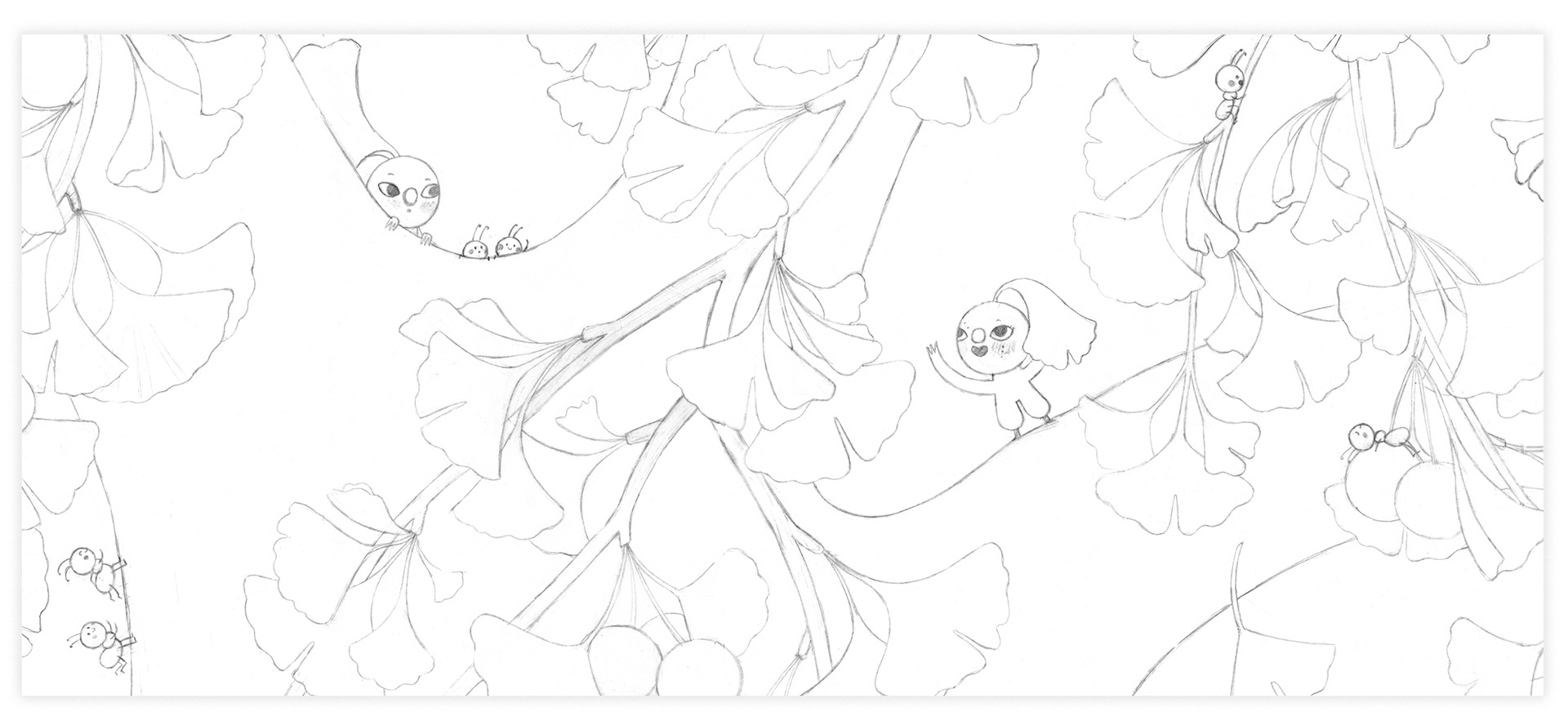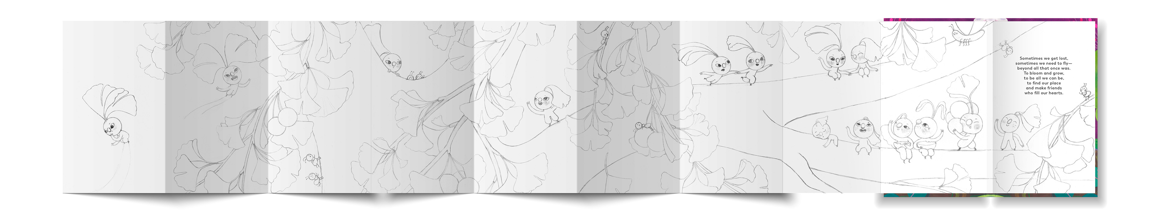 "Little Ginkgo, Big Journey" is a leporello project that tells a small, almost wordless story.