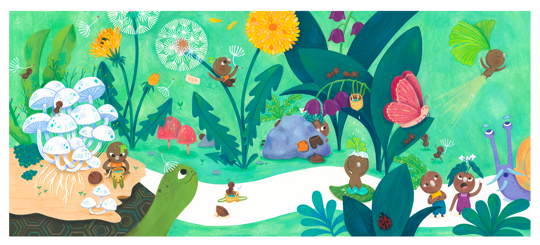 In a poetic and symbolic way, it follows a tiny seed that struggles to grow, feeling vulnerable and lost — until a magical recipe leads it towards a new destiny.